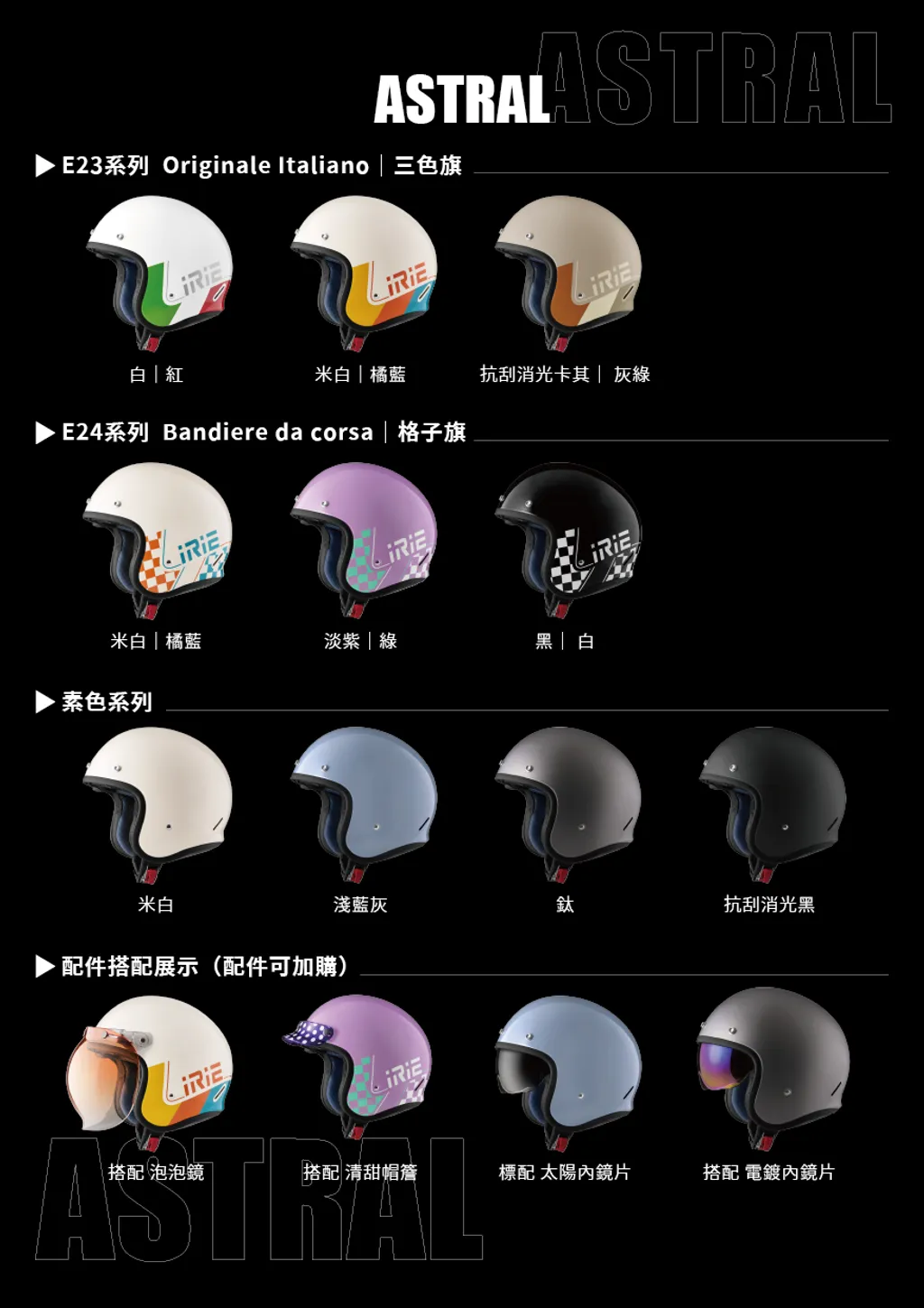 義大利 iRiE 安全帽 ASTRAL 素色-米白 3/4罩 半罩 安全帽 內墨片內襯可拆